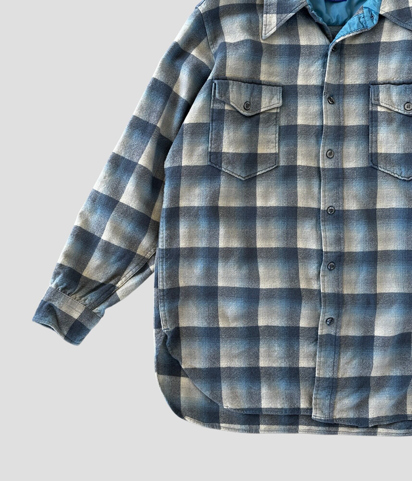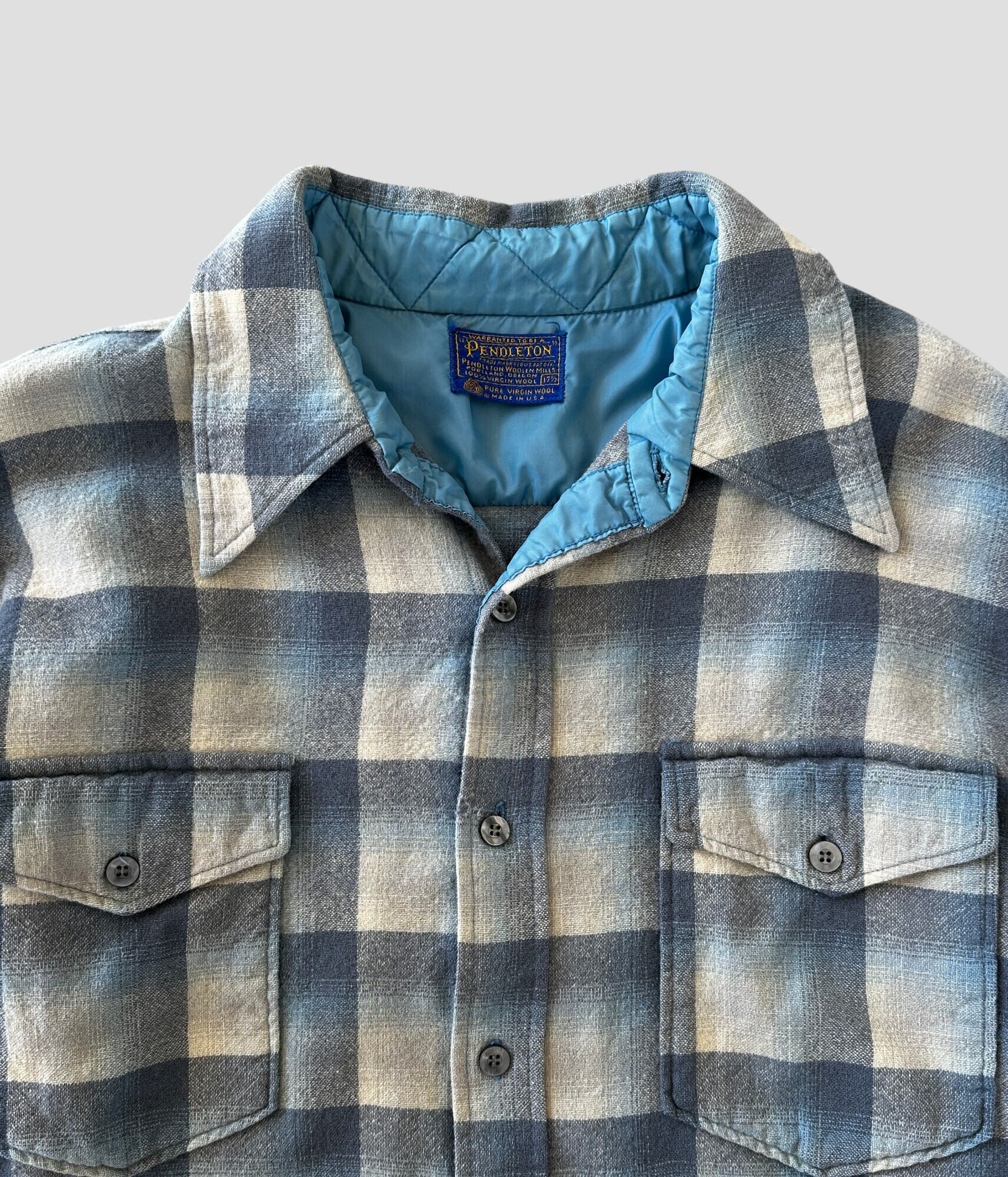 -PENDLETON- Vintage 70s 171/2 Wool Check Shirt made in USA