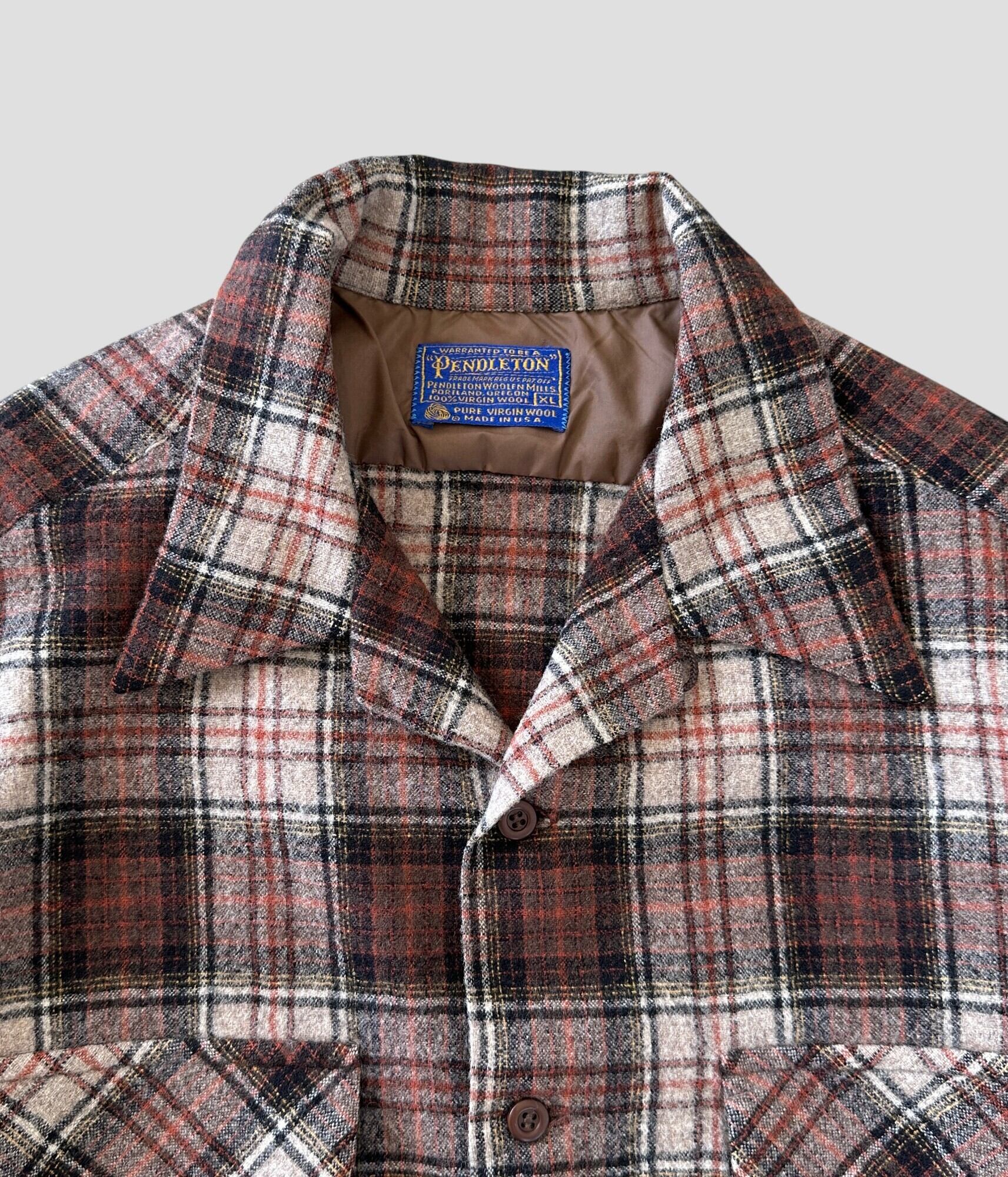 -PENDLETON- Vintage 70s XL Wool Check Shirt made in USA
