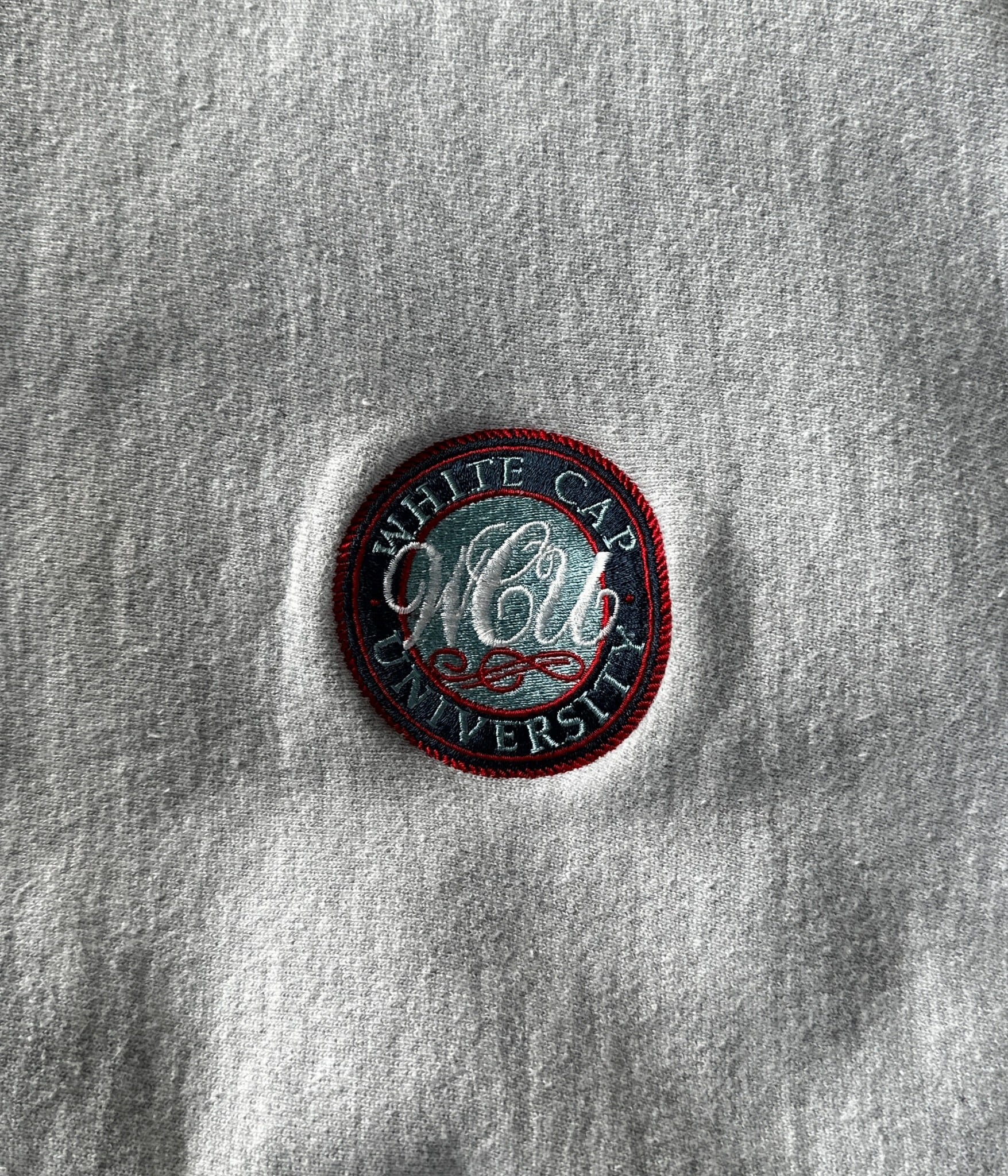 -Champion- Vintage 90s L WHITE CAP UNIVERSITY Reverse Weave Sweat made in USA