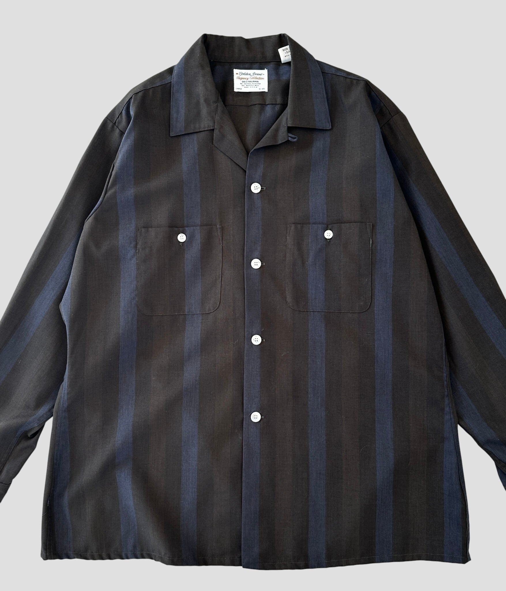 -Golden Arrow- Vintage 60s L Opencollar Stripe Shirt made in USA