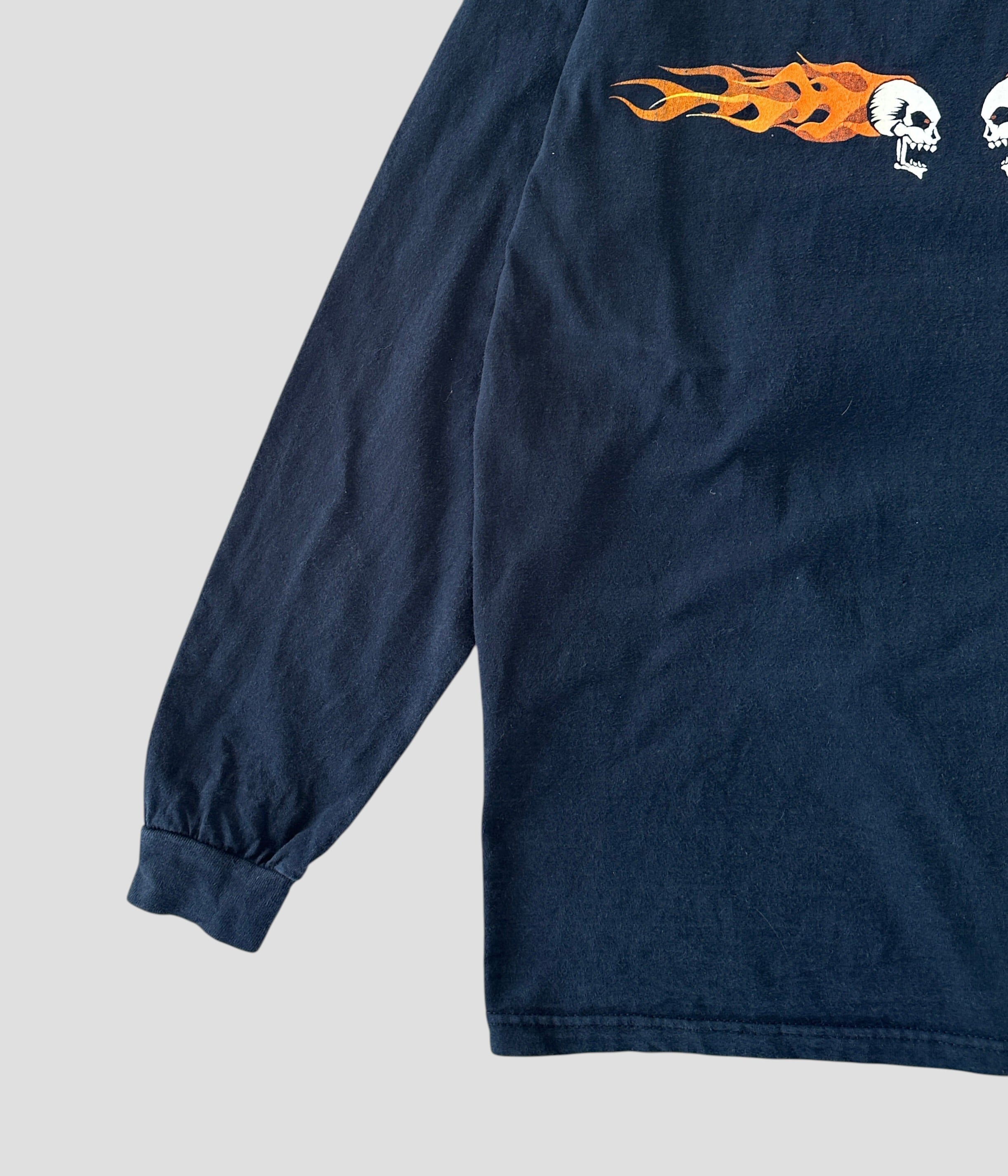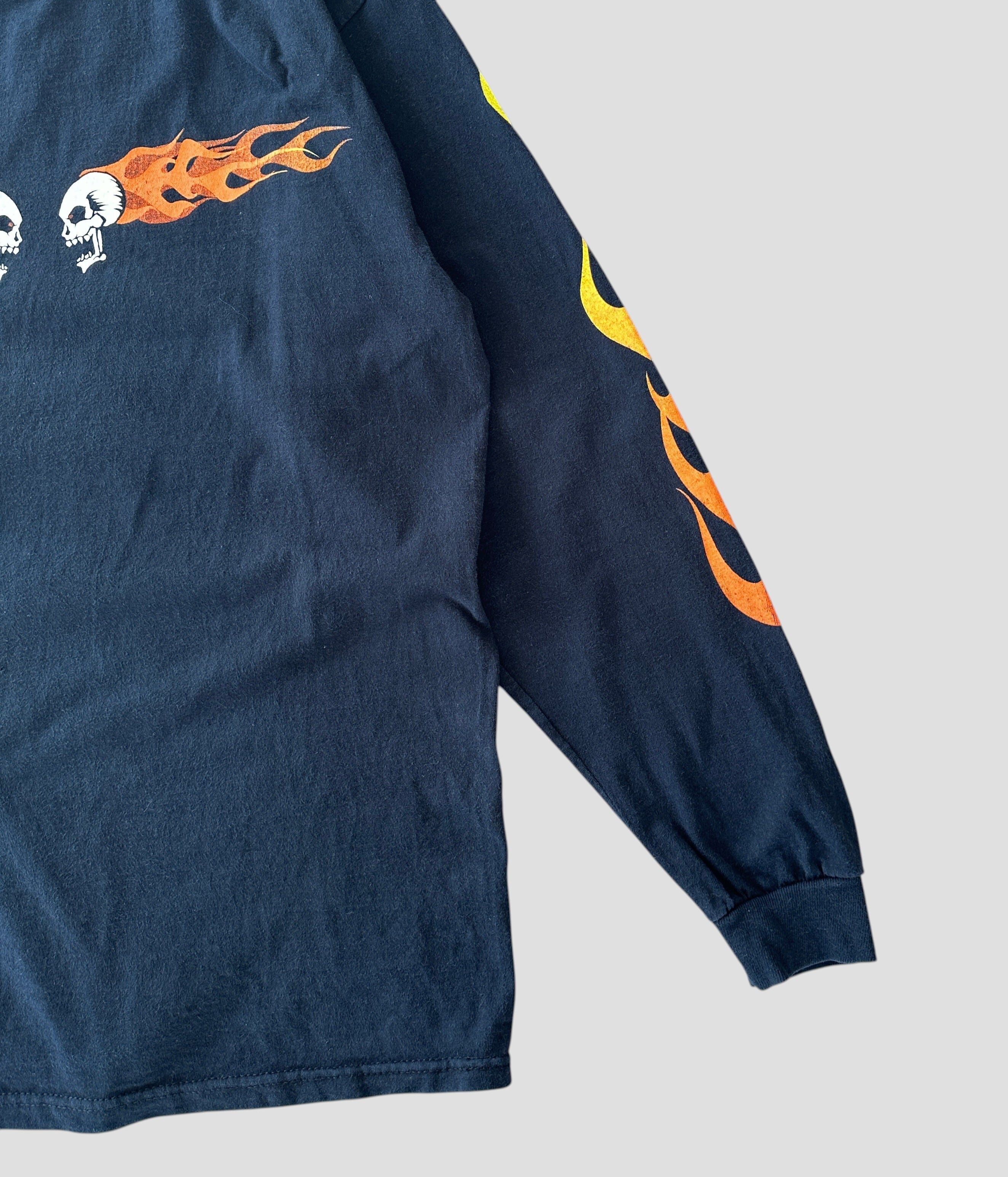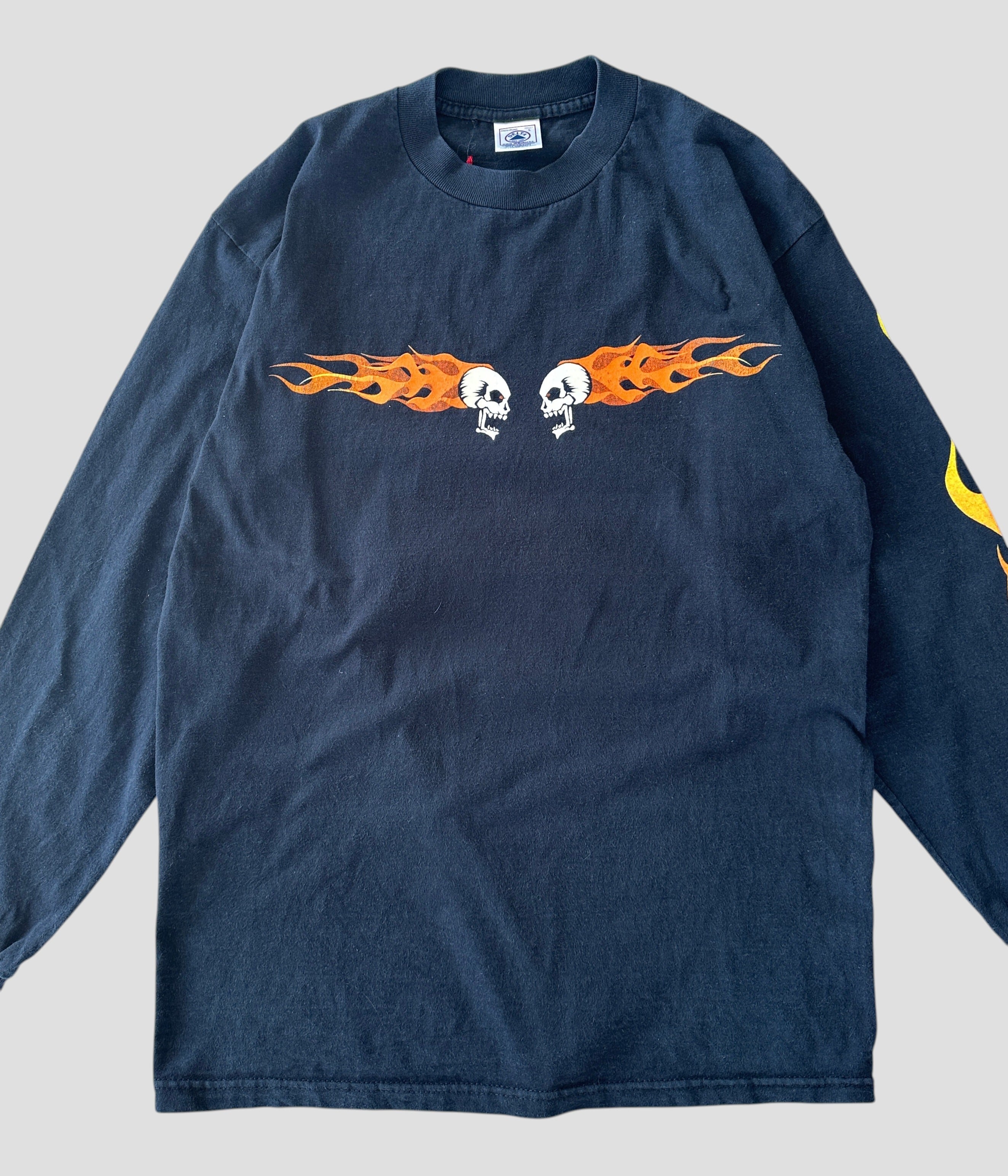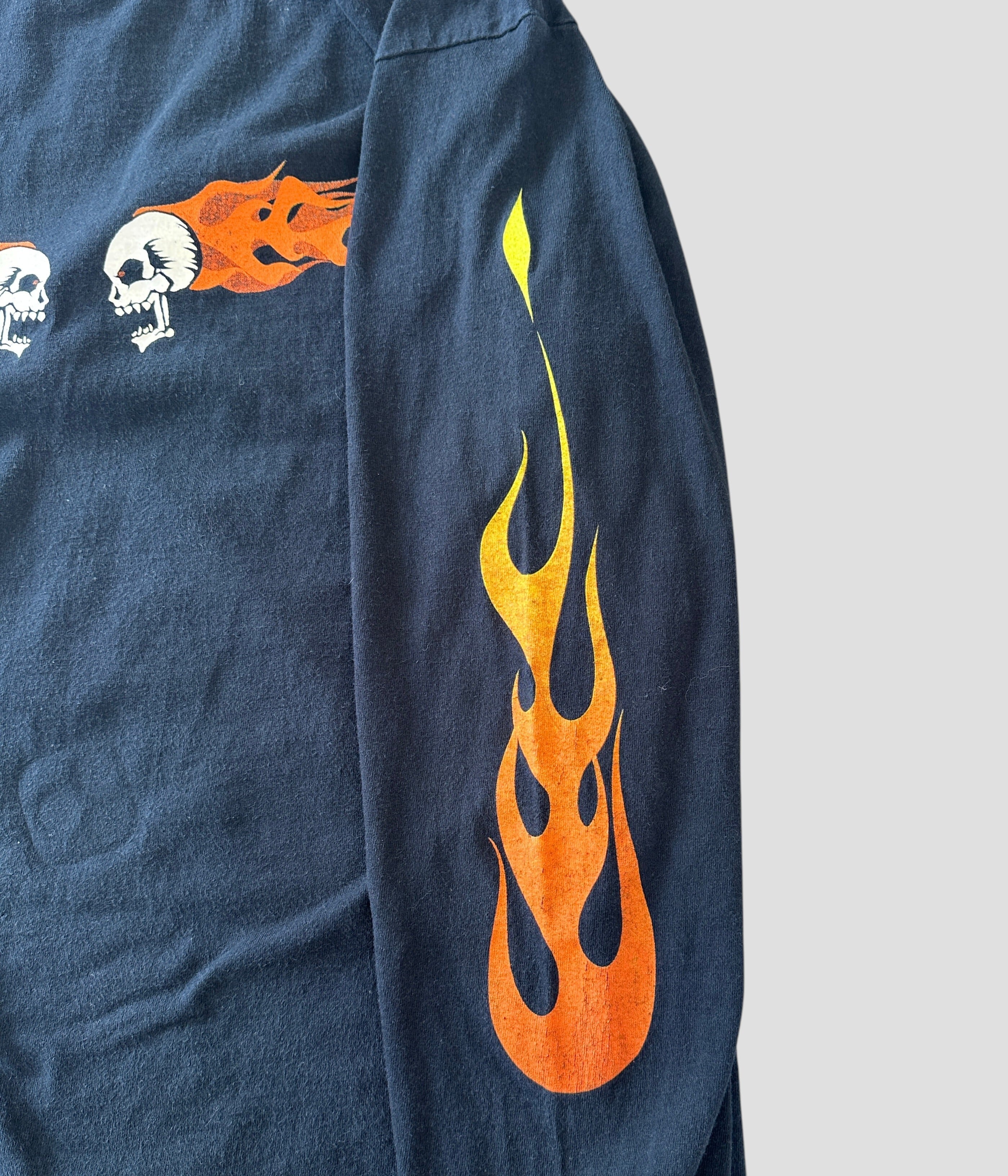 Vintage 90s L Flaming Skull Print Long Sleeve T-shirt