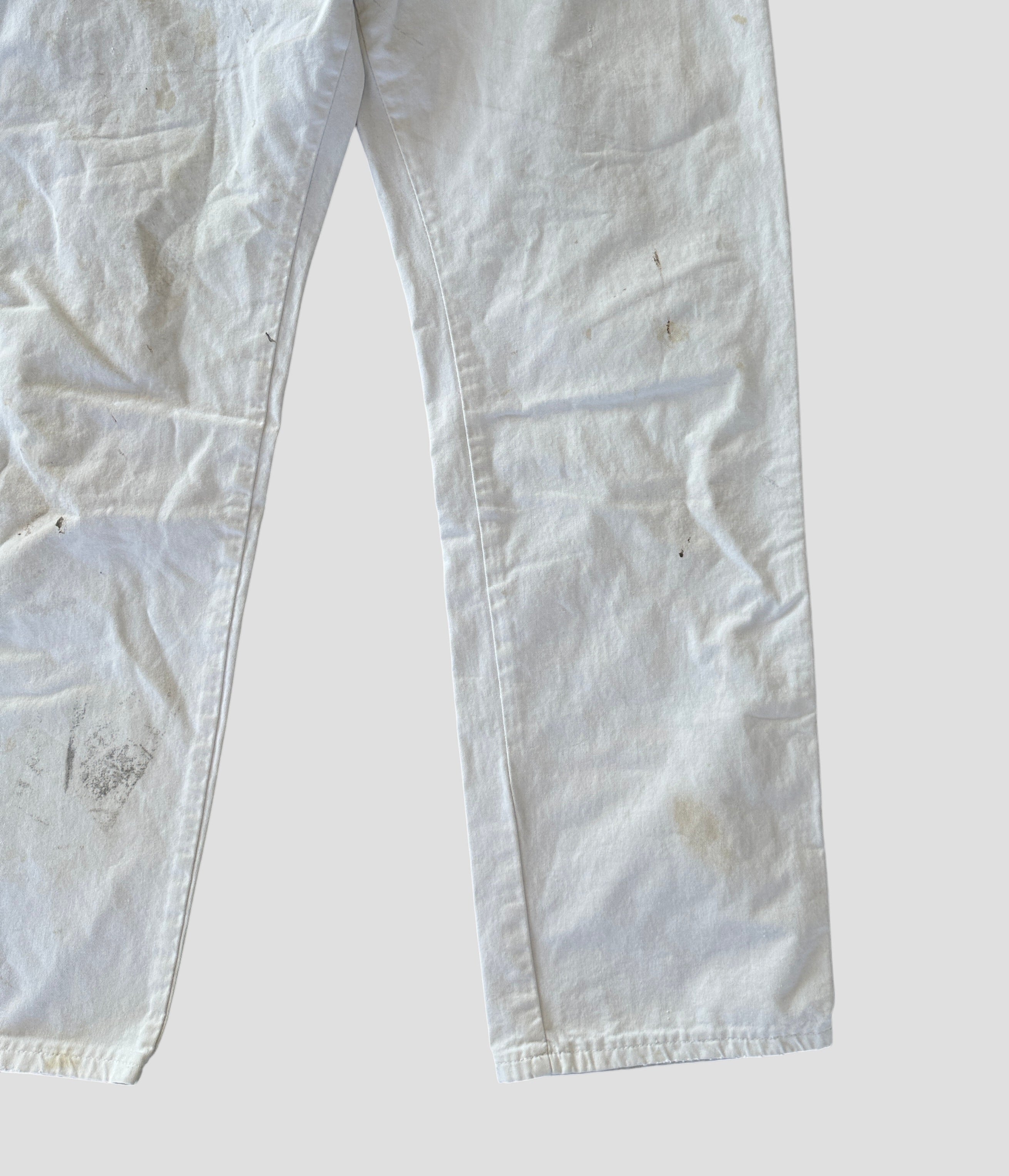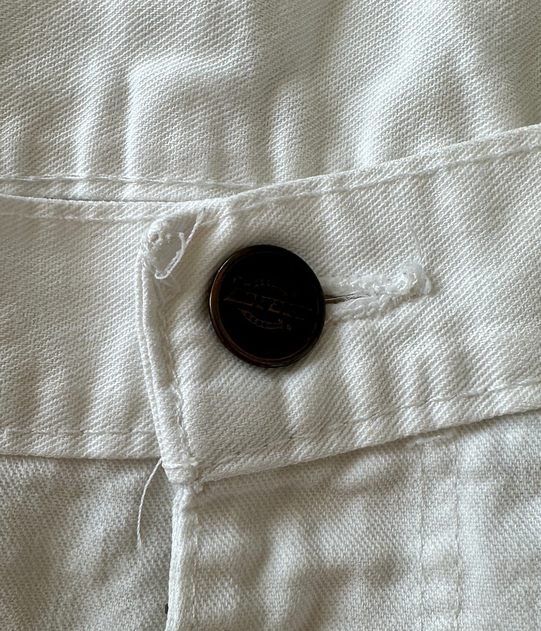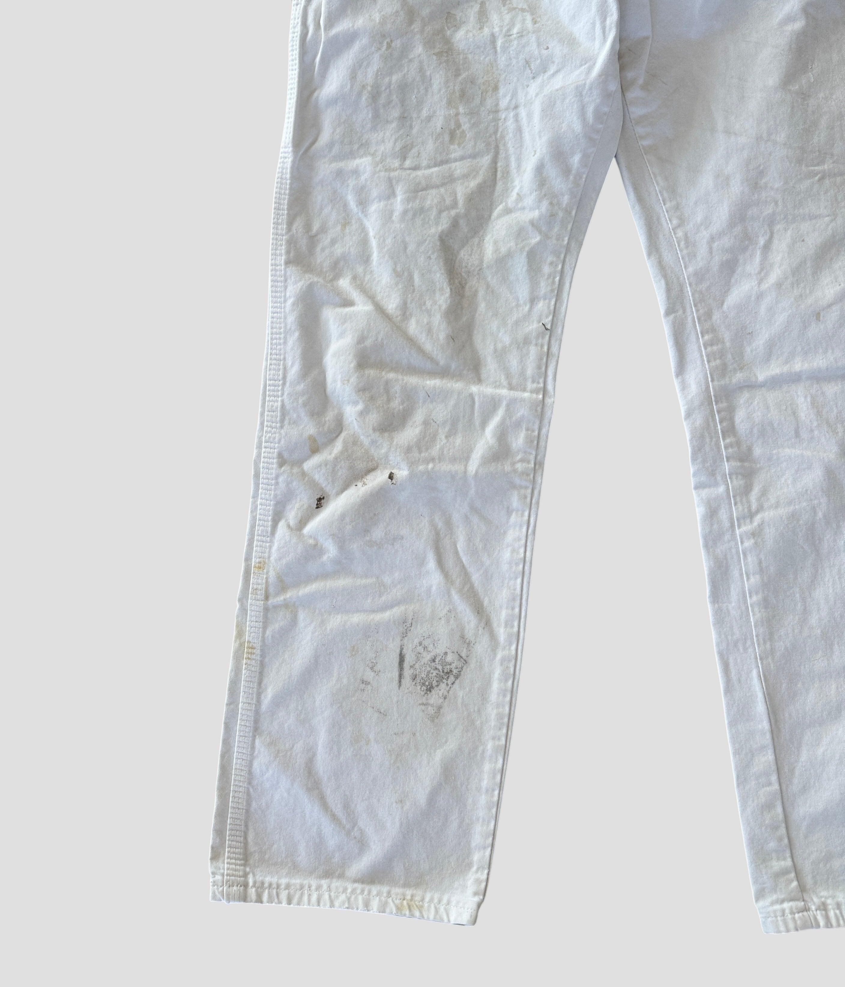 ホワイトダック地特有のリアルなワーカーが穿き込んだことで付いた汚れや擦れが一点物としての風合いを醸し出しています。