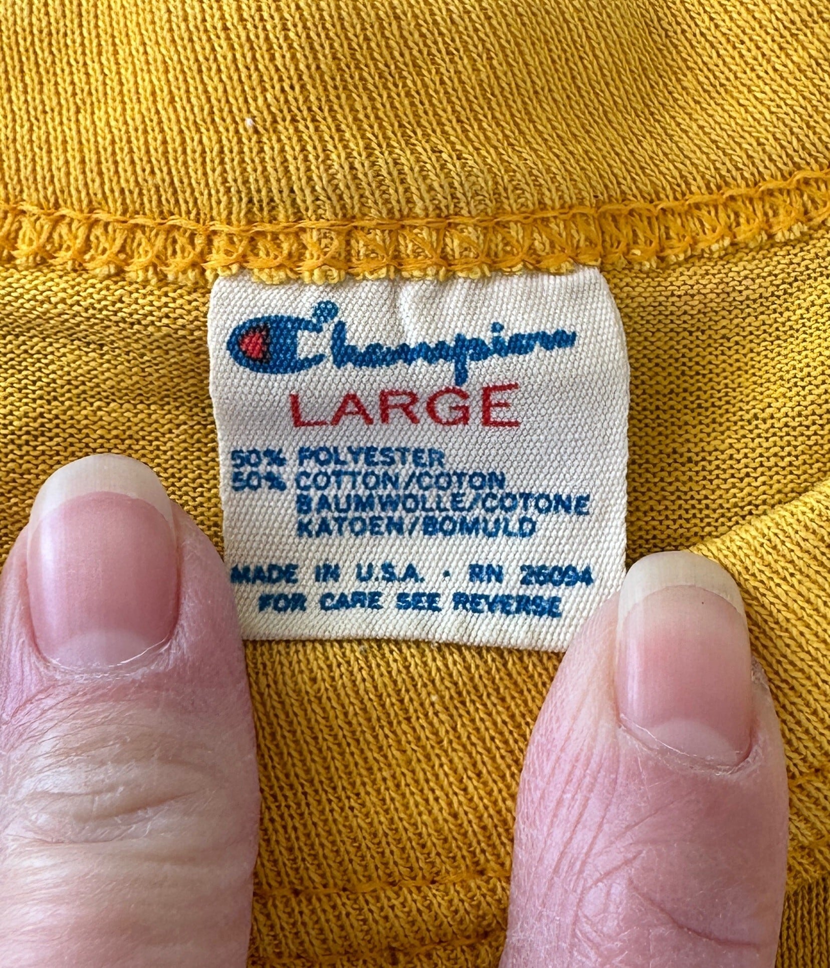 ボディはアメリカ製で、この年代特有のコットン50%・ポリエステル50%の混紡素材。