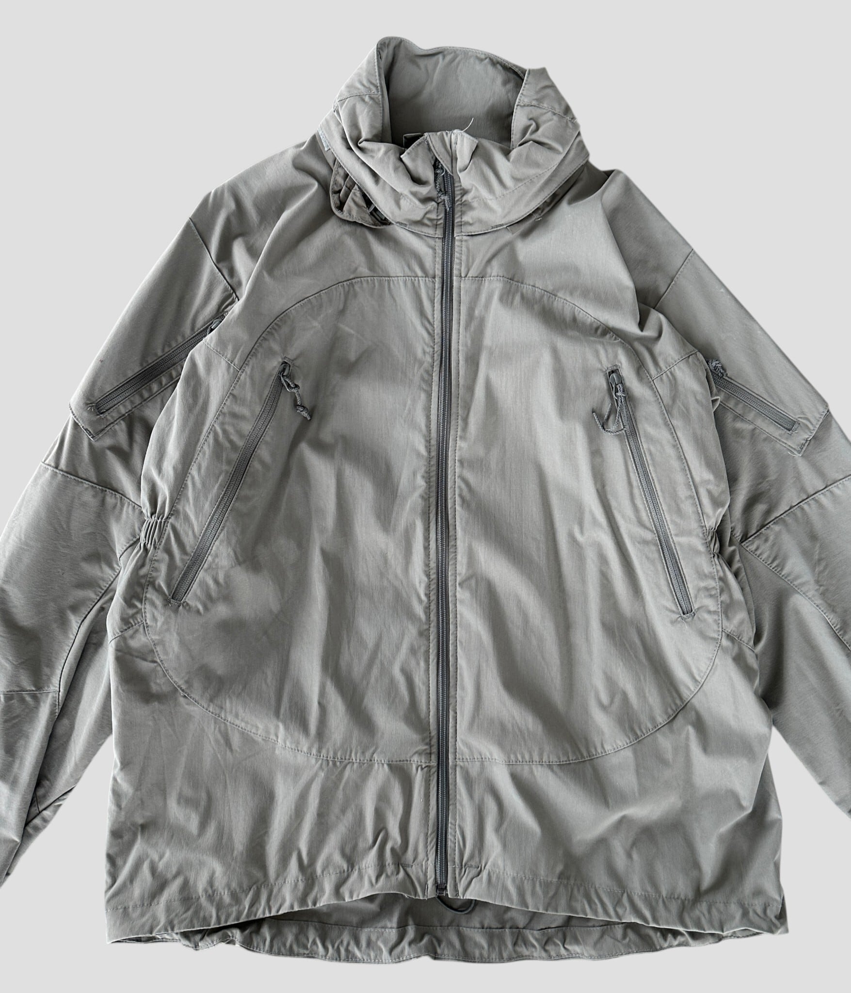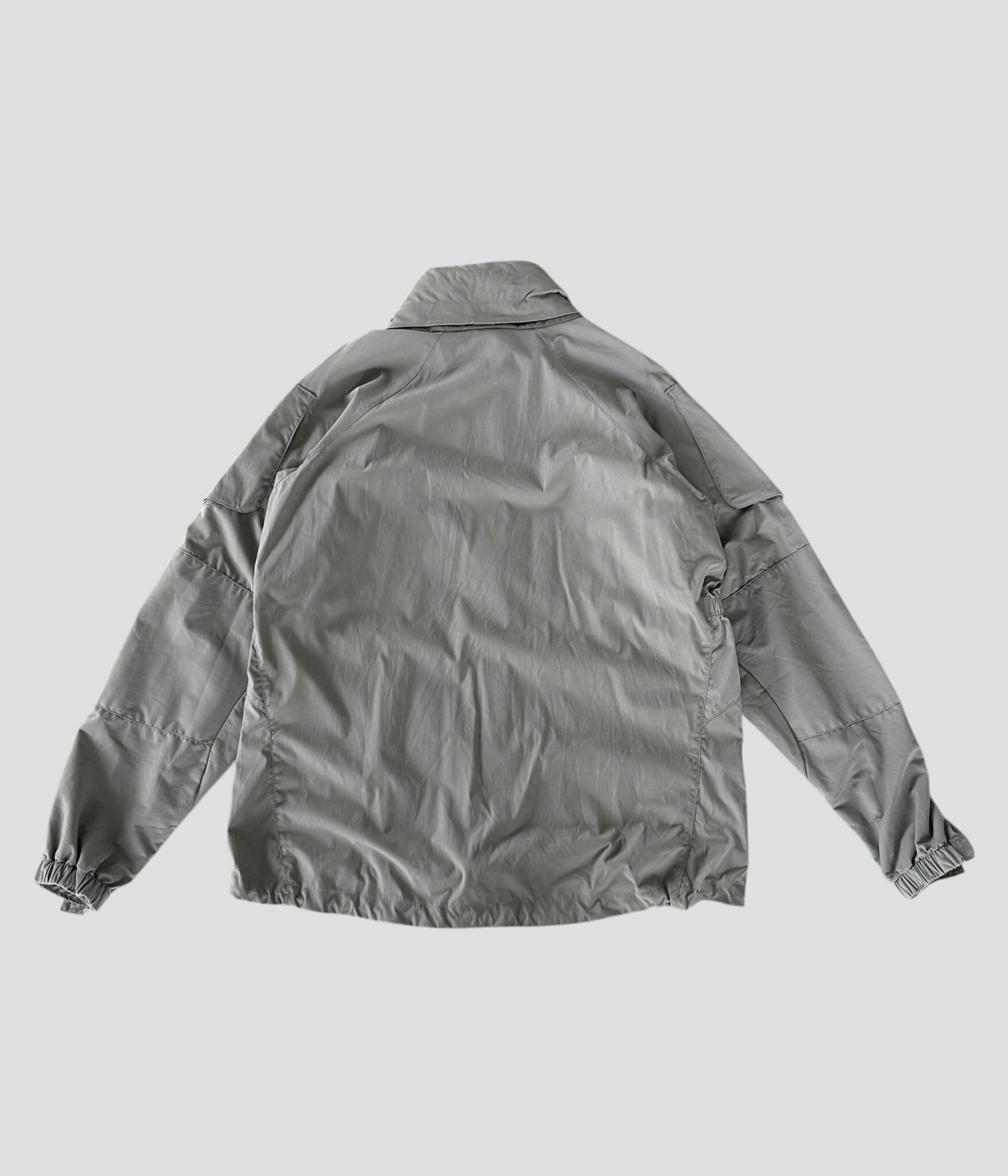 ミニマルなスタンドカラーのデザインに無骨なジップのアクセントが効いた一着です。