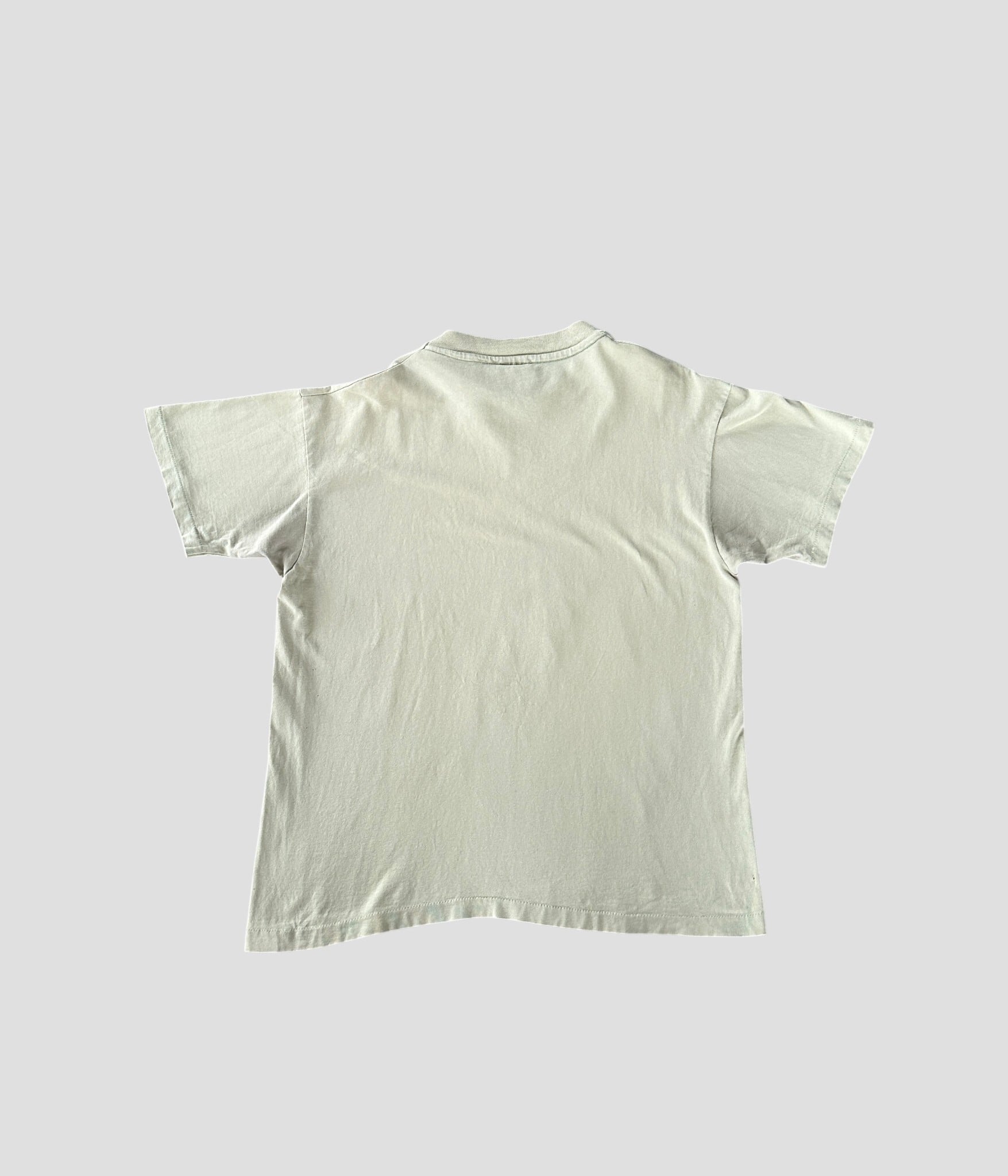 絶妙なセージグリーンのボディカラーがプリントの退廃的な雰囲気をより一層引き立てる1枚。