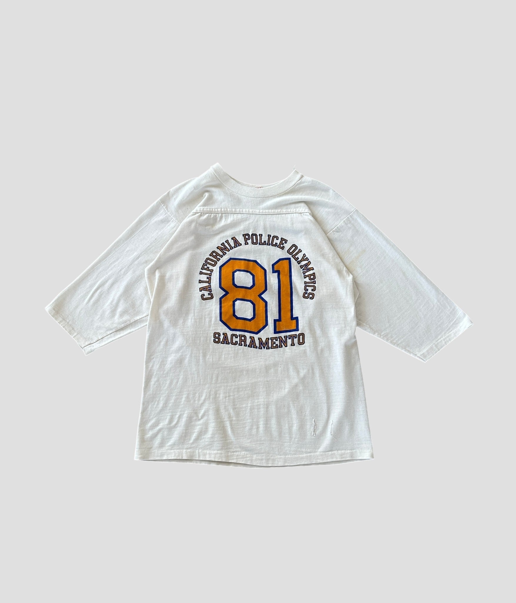 フロントには1981年にカリフォルニア州サクラメントで開催されたカリフォルニアポリスオリンピックの公式デザインのプリント。