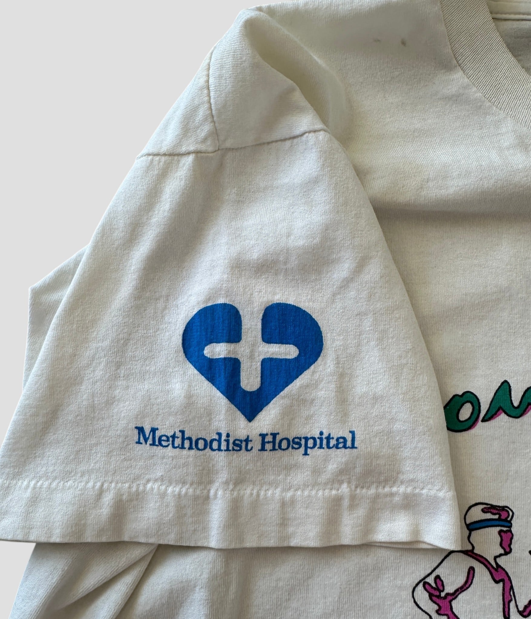 90年代らしいポップなカラーリングと、レトロなグラフィックが目を引く一着。