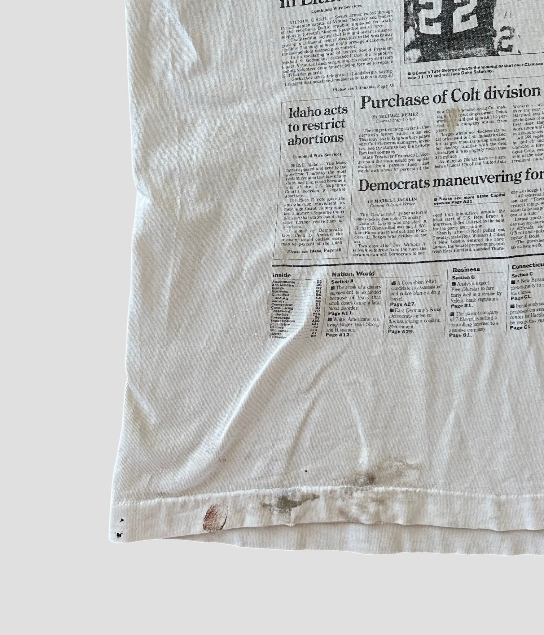 90年代ヴィンテージのThe Hartford CourantのニュースペーパープリントTシャツです。